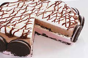 LINE 9-inch round pan with plastic wrap, with ends extending over side of pan. Stand 14 cookies around edge of pan. Crush remaining cookies. Reserve 1/2 cup crumbs for later use; sprinkle remaining crumbs onto bottom of pan. Spread strawberry ice cream over crumbs; top with 1 cup COOL WHIP and reserved crumbs. Cover with chocolate ice cream.