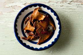 Cut the mushrooms into reasonable pieces. With small mushrooms, like a button mushroom, you need only cut them in half, and you can leave the smaller ones whole. With large chanterelles and porcini, cut them into 1/2 inch thick slices. They will shrink a lot in this process, and they will be pliable, so they can be a little larger than you’d think they ought to be.