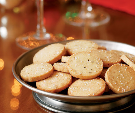 Heat the oven to 375°F. Line two large baking sheets with parchment. Using a thin, sharp knife, cut the log into scant 1/4-inch slices. Arrange about 1/2 inch apart on the prepared sheets. Bake until medium to deep golden around the edges, 15 to 20 minutes, rotating the sheets as needed for even baking. If you like, sprinkle the crackers with a little kosher salt just as the baking sheets come out of the oven. Set the sheets on racks to cool. When the coins are completely cool, store them in an airtight container.
