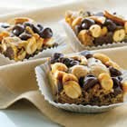 3. Sprinkle 1 cup morsels, pretzel pieces and peanuts over dough. Drop 1-inch pieces of remaining 1/2 cup cookie dough over peanuts. Sprinkle with remaining 1/2 cup of morsels and gently press down.