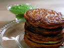 Begin to heat the oil over medium-high heat and dip the eggplant slices in the batter and then place into the hot oil. Fry the eggplant until golden brown on the first side and then carefully turn the slices and fry on the other side until the eggplant is tender and golden on both sides, about 7 minutes total. If they start to get too brown, turn the heat down to medium. Serve the eggplant with the Green Pea Sauce.