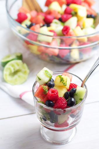 • 5-6 cups of chopped fruit (I used melon, pineapple, and berries)