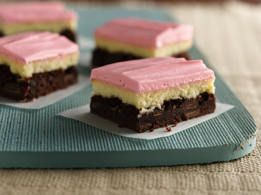 3 Bake 30 to 35 minutes or until set. Cool 30 minutes. Spread frosting over cream cheese layer. Refrigerate about 2 hours or until chilled. For bars, cut into 6 rows by 6 rows. Store covered in refrigerator.