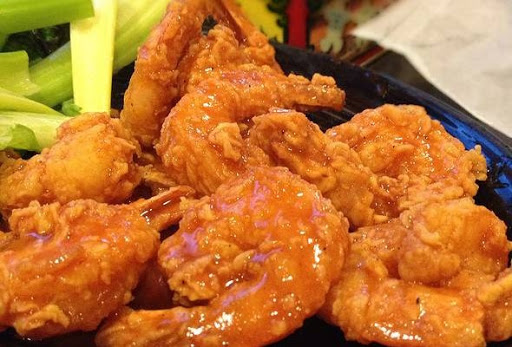 Deep fry for 8-10 minutes until shrimp tails are dark brown.