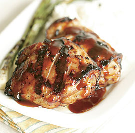 While the thighs are on the grill, pour the marinade into a small saucepan. Bring to a boil over high heat and reduce the liquid to a syrupy glaze (about 1/3 cup), 10 to 15 minutes.