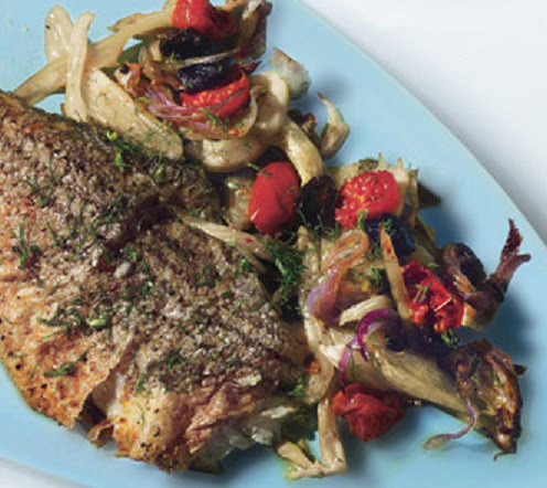 Arrange vegetable mixture around the fish on a serving platter. Sprinkle chopped fennel fronds and serve.