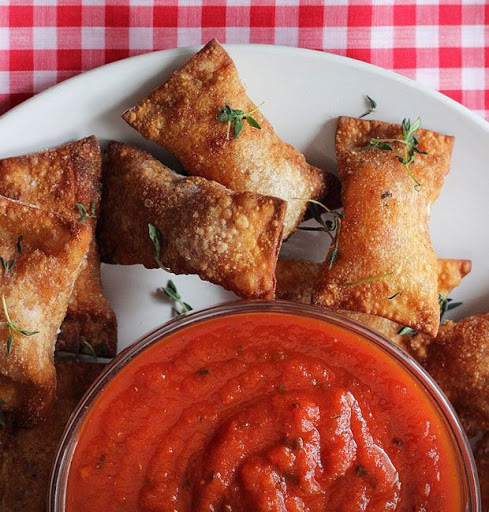 Trim down the edges of your wrapper; kitchen scissors work great for this. Transfer to the prepared cornstarch-dusted baking sheet (seam side down). Repeat the sealing process with the other wrappers then continue to fill and seal using the remaining filling and wrappers. (Place additional sheets of parchment dusted with the remaining cornstarch between layers of pizza rolls on the baking sheet.)