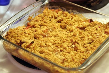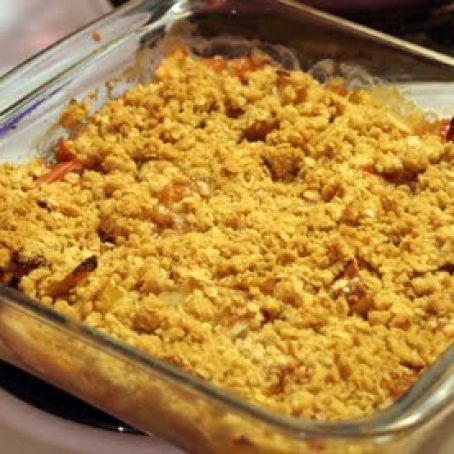 Cream butter, gradually add sugar. Blend in flour and oats. Spread over apples. Bake in oven preheated to 375 F (moderatley hot oven) until apples are tender (about 35 minutes). Serve warm with plain or whipped cream.