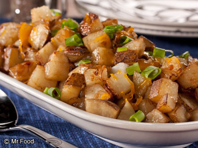 Cover and bake 25 minutes; uncover and stir. Cover and bake an additional 30 minutes or until potatoes are tender. Sprinkle with cheese and green onions; serve immediately.
