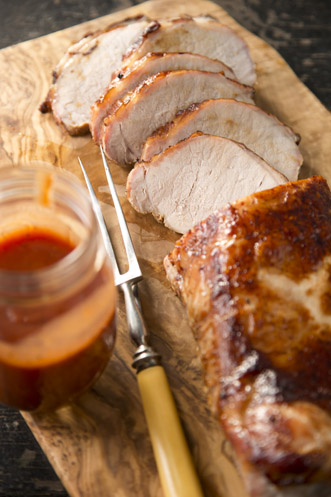Remove roast from bag, place in a roasting pan, and discard marinade. Roast pork loin at 325 degrees F for 2 to 2 1/2 hours, or to an internal temperature of 160 to 170 degrees F. Serve with your favorite barbecue sauce.