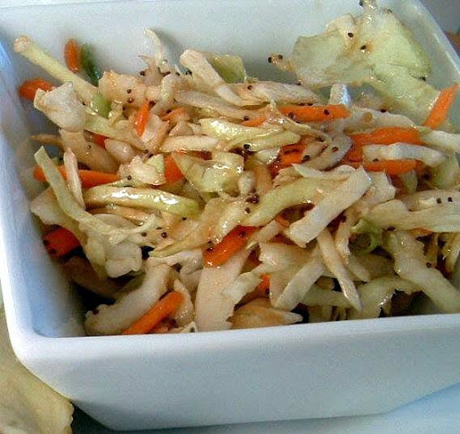 1. Assemble the cabbage and shredded carrots in a large bowl.