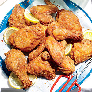 6. Pour oil to depth of 1 1/2 inches into a cast-iron Dutch oven; heat over medium heat to 325°. Fry chicken, in batches, 15 to 22 minutes or until browned and done, turning occasionally. Drain on a wire rack over paper towels.