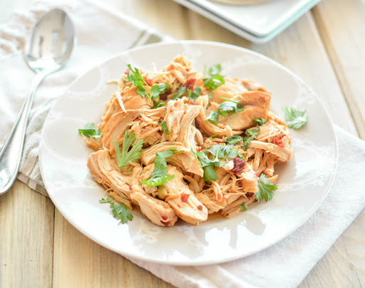 Cover and cook for 4 hours on high or 6-8 hours on low. Shred the chicken with two forks.