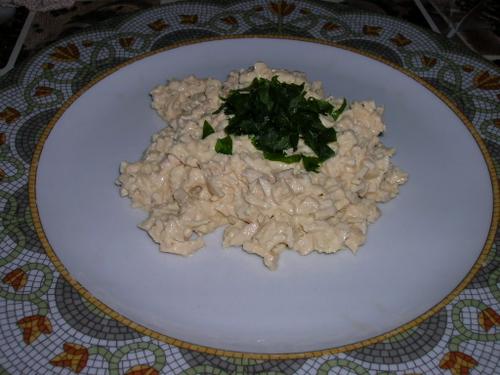 Mezclar el pollo con la salsa integrándolos totalmente.