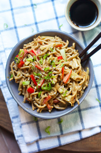 - 1 lb soba, rice or other thin noodles- cooked, and cooled