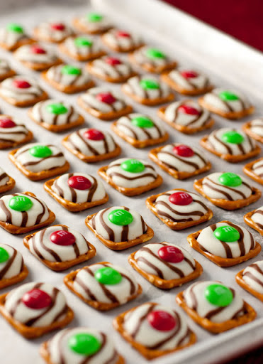 Sweet and salty, these treats are fun and addicting. Use regular M&M's when it's not Christmas time and you're craving this delicious treat.