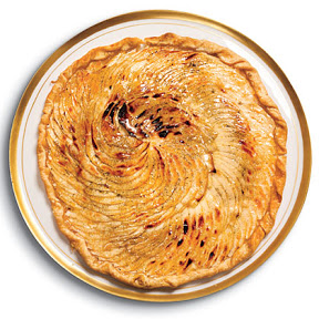 3. Scrape seeds from vanilla bean. Combine seeds, brown sugar, and nutmeg in a small bowl, stirring with a whisk. Sprinkle 1 tablespoon sugar mixture over dough. Arrange apple slices in concentric circles on prepared crust. Sprinkle apples with the remaining sugar mixture. Bake at 425° for 35 minutes or until apples are tender and crust is golden brown.