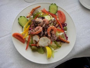 3. Divide the salad greens among 6 plates or mound on one large platter. Place the seafood mixture on the greens.