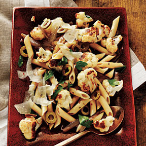 4. Cook pasta in boiling water 7 minutes or until almost tender. Drain pasta through a sieve over a bowl, reserving 1/2 cup pasta cooking liquid. Return pasta to pan over medium-high heat. Add reserved cooking liquid and cauliflower mixture; toss. Cook 2 minutes or until pasta is al dente, stirring occasionally. Remove from heat; sprinkle with parsley, and garnish with shaved cheese.