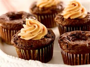 3. Cool in pan 10 minutes; remove to wire rack; cool completely. Cream together peanut butter and butter. Beat in sugar, vanilla and milk to spreading consistency. Spread over cool cupcakes.