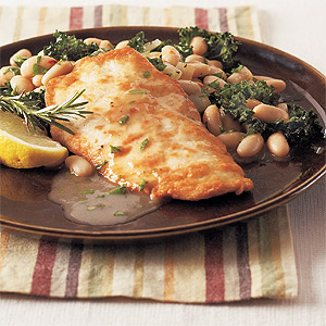 Chicken Cutlets with Spicy White Beans and kale