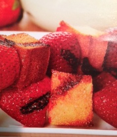 Thread pound cake pieces and strawberries alternately as desired on skewers, beginning and ending with pound cake.