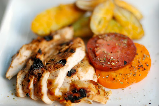 Heat grill (either outdoor grill, or indoor grill pan) to medium high. Grill chicken for approximately 6-7 minutes on each side or until juices run clear. If you're using fairly thin chicken breasts, cut time down