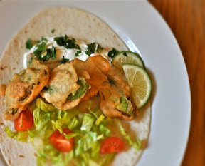 Place a few fried pieces in a tortilla with toppings of your choosing, like lettuce and tomato.