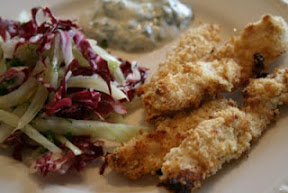 Stir together mayonnaise, 2 tablespoons of the yogurt, the mustard, 1/2 teaspoon of salt and 1/4 teaspoon of the pepper in a medium bowl. Add chicken and toss to coat. Place panko in a shallow dish. Dip chicken pieces, one at a time, into panko, pressing gently to coat. Place on prepared baking sheet and lightly spray with cooking spray. Bake 10 minutes.