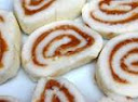 - Form into ball and roll out thin. Spread with peanut butter and roll up forming log. Refrigerate until ready to serve and then slice.