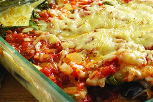 4.-Para el armado final, cubrir el fondo de una fuente rectangular térmica con un poco de salsa de tomate; espolvorear parmesano rallado; hacer una capa de berenjenas; otra de finas rodajas de mozzarella; algunas hojas de albahaca; y repetir todo hasta terminar los ingredientes cubriendo todo con salsa y parmesano.