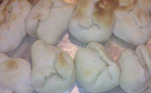 After the rolls are thawed (but not rising) take one and stretch it out and lay it flat on a greased cookie sheet.