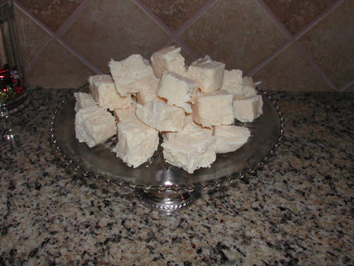 4 Add marshmallow creme and white chips stirring til well blended and chips are melted.