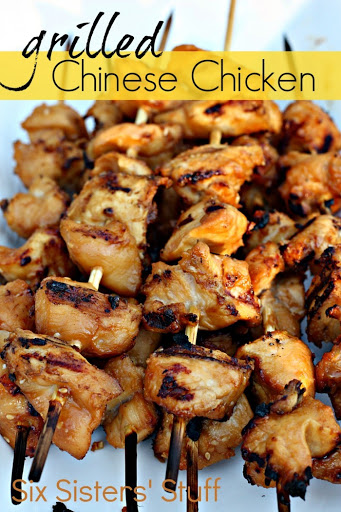 Place kabobs on a grill over medium-high heat. Cook until chicken is no longer pink and has an internal temperature of 165 degrees (about 10 minutes, turning chicken once).