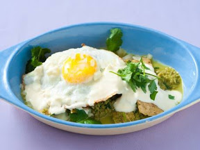 2.-Add chips, stirring to coat with sauce, and cook, stirring gently, until softened but not mushy, about 1 minute. Spread chilaquiles on a platter and top with fried eggs.