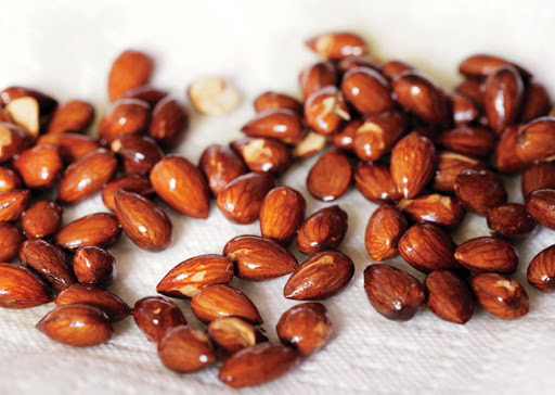 Heat oil in a large skillet until hot but not smoking. Add almonds and cook, stirring occasionally, until browned and toasted through, 7–8 minutes. Using a slotted spoon, transfer to paper towels. Season generously to taste with salt. DO AHEAD Can be made 1 day ahead. Store cooled nuts airtight at room temperature.