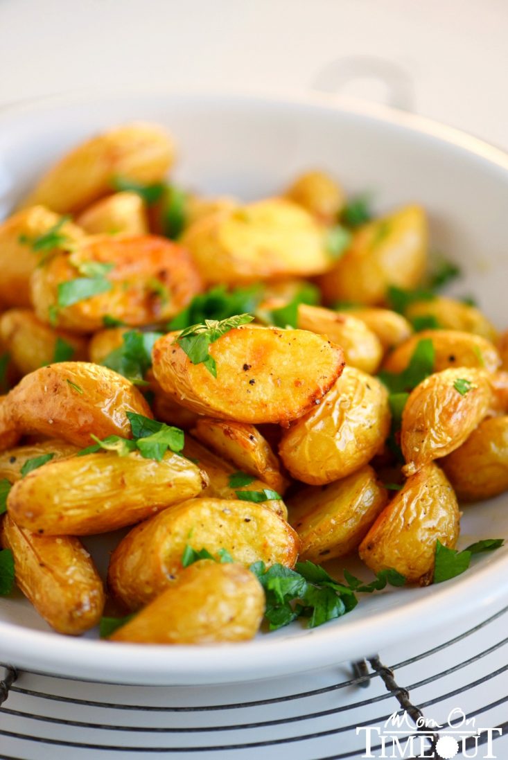 Remove the potatoes from the oven and toss with fresh parsley. Check for seasoning before serving hot.