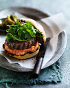 Form the meat into 4 large patties, about 1 inch thick and brush lightly with olive oil. Season with salt and pepper and grill over a medium-high fire for 9 minutes for medium meat. Brush the cut sides of the rolls with olive oil and grill until lightly browned, about 2 minutes.