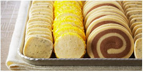 1. Prepare the dough recipe, stirring in the lemon zest when adding the egg yolks. Shape the dough into logs that are an inch across and wrap in plastic wrap. Chill until firm, about 2 hours.