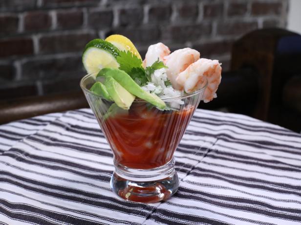 Serve the cocktail sauce in a chilled glass bowl or individual cocktail glasses. Perch the shrimp and some lemon and lime rounds on the rim. Top with the avocado and cilantro (I don't like cilantro so I use parsley). Serve with crackers.