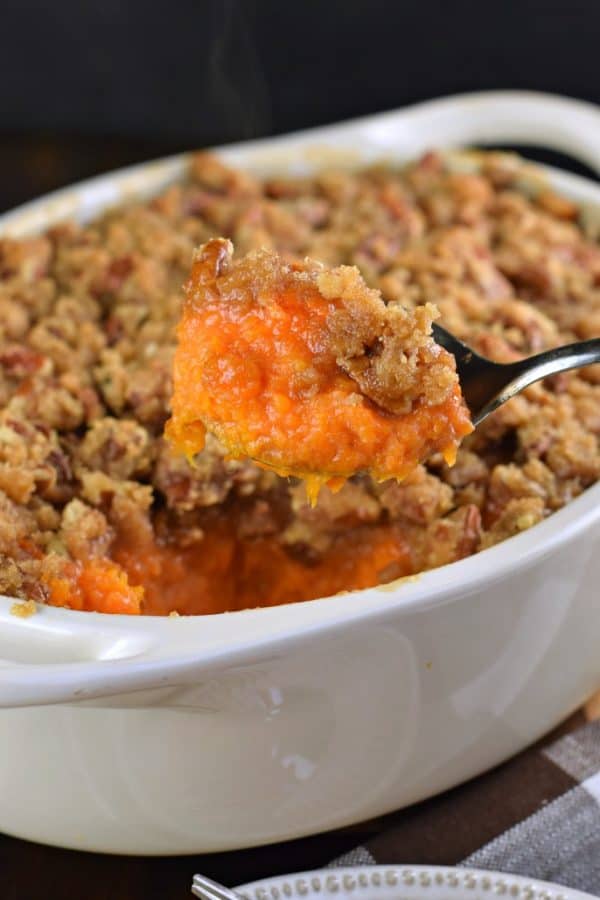 The Best Sweet Potato Casserole recipe with a crunchy pecan streusel topping!