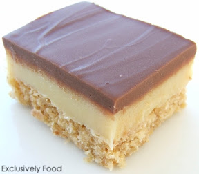Pour the chocolate mixture over the caramel and smooth out. Place the slice in the fridge and chill for about 30 minutes until set. Cut into squares with a dry warm knife.