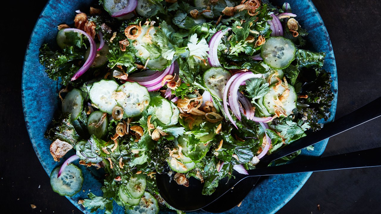 Kale and Cucumber Salad with Roasted Ginger Dressing