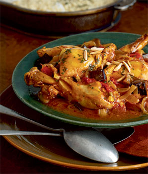 Moroccan Chicken with Eggplant, Tomatoes, and Almonds