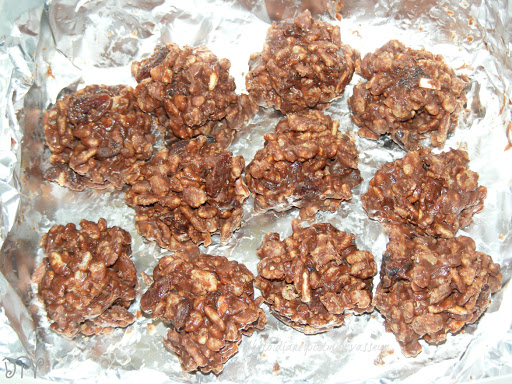 Crisp candy-like nuggets made with dried cherries, slivered almonds, rice krispies, and melted chocolate. Great addition to your Christmas candy tray, or like right now!