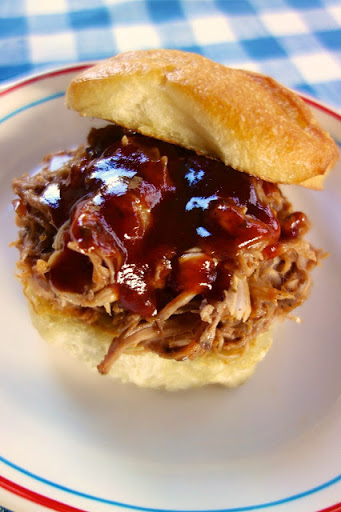 Place pork, fat side up, in slow cooker and cook on low for 8-10 hours. Remove pork from slow cooker. Remove fat cap from top. Pull meat apart. Toss with 1 cup of BBQ sauce. Serve on buns with additional sauce.