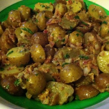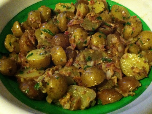 Halve the potatoes and boil in salted water 15 minutes or until tender. Drain.