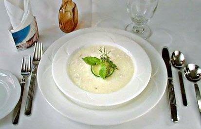 3. Return this mixture to the pan, turn off the heat and stir well. Season with salt and pepper and serve at once, garnish with lemon slices. Do not let the soup boil once the eggs have been added or it will curdle.