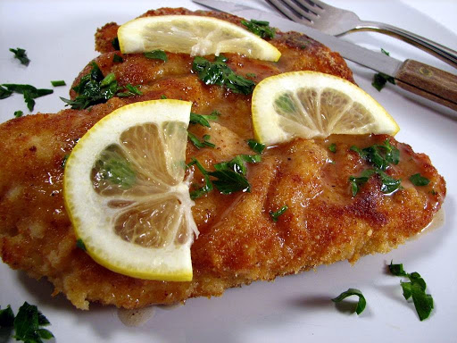 3. Stir lemon juice and wine into drippings in skillet. Heat to boiling; pour over chicken. Sprinkle with fresh parsley and serve with lemon wedges for garnish.
