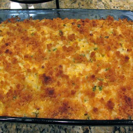 When potatoes are done, whip with the above ingredient until light and fluffy. Put in a well greased casserole dish.